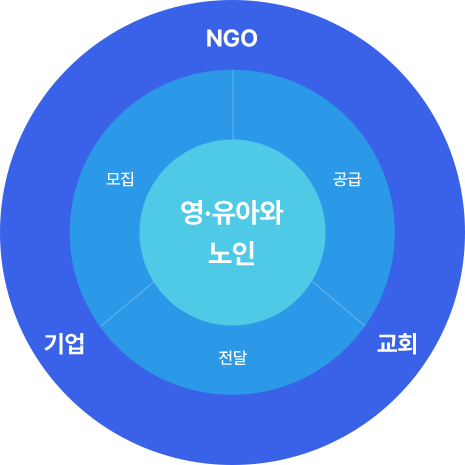 교회 : 국내외 교회의 나눔 사업을 연결 기업 : 국내외 대북사업을 진행하는 기업들과 연결 NGO : 직접 대북협력사업을 수행하는 단체들과의 연계